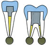 ![]() 残った歯を強くするため 土台 (コア)を入れる |
